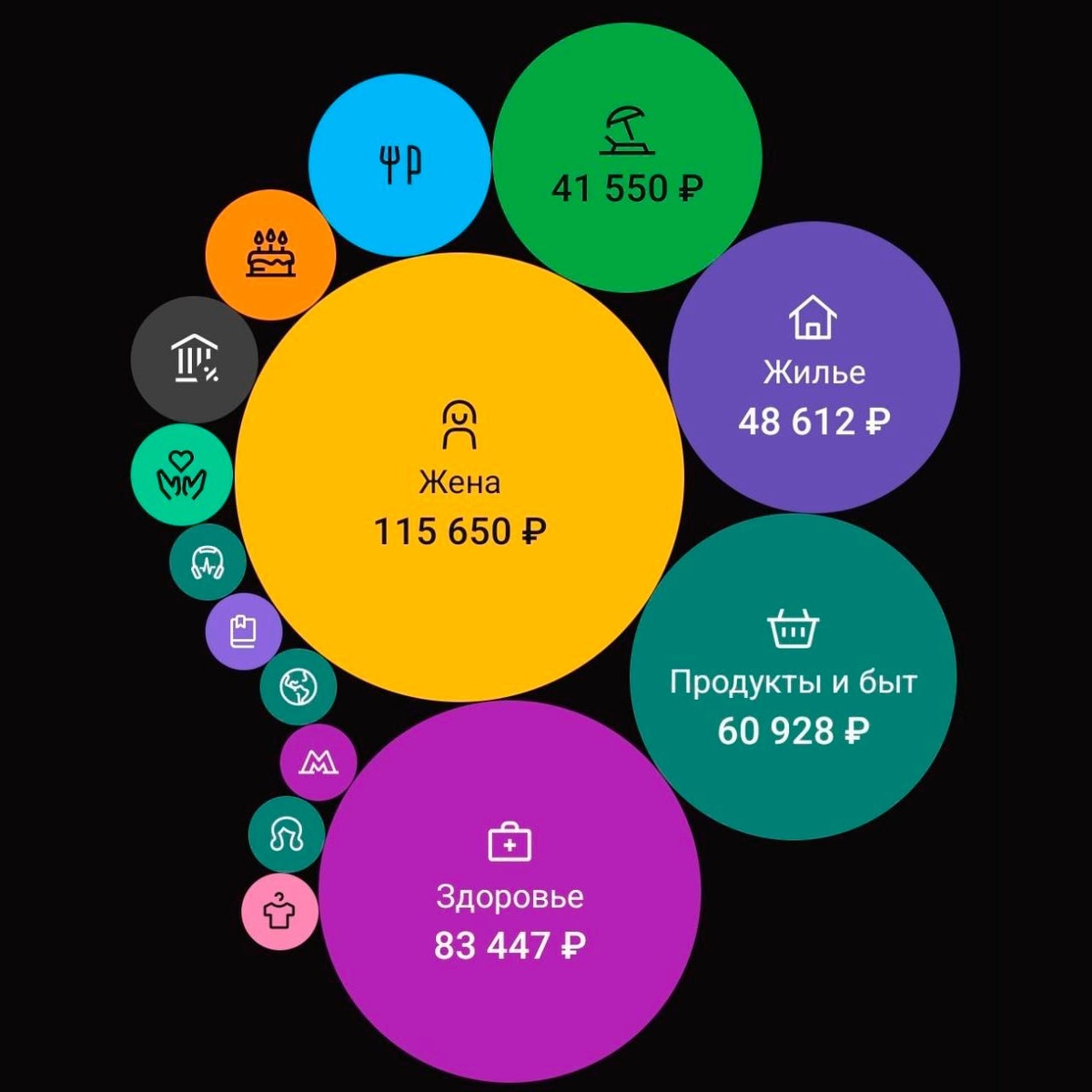 На постоянной основе я ленюсь вести учет расходов. Лет 10 делал это, но богаче не стал. Но иногда я врываюсь в учет и несколько месяцев пристально слежу, куда уходят деньги. Чтобы понять реальный текущий уровень расходов. Но плюсов в учете много и, если бы не лень, было бы хорошо вести его постоянно. Возможно, блог послужит мне подпоркой в этом вопросе. Первого января я скачал Дзен-Мани и начал вести личный учет доходов и расходов. Важно: это на семью из двух человек и двух котов в Санкт-Петербурге. Делюсь цифрами с вами. Во многих видео я рассказываю, что НУЖНО ТРАТИТЬ НА СЕБЯ. Чтобы была мотивация зарабатывать больше и непрерывно искать варианты. Посмотрим, куда эта стратегия приводит мою семью здесь и сейчас. Вот мои расходы: ЖЕНА — 115 650 рублей. Это карманные деньги (каждую неделю перекидываю 10 тысяч) + то, что она сама заработала. Тратит на свои женские штучки (в основном, на коллекцию парфюма). ЗДОРОВЬЕ — 83 447 рублей. Аптеки, врачи, анализы, МРТ, чистка зубов. Ну и заодно за