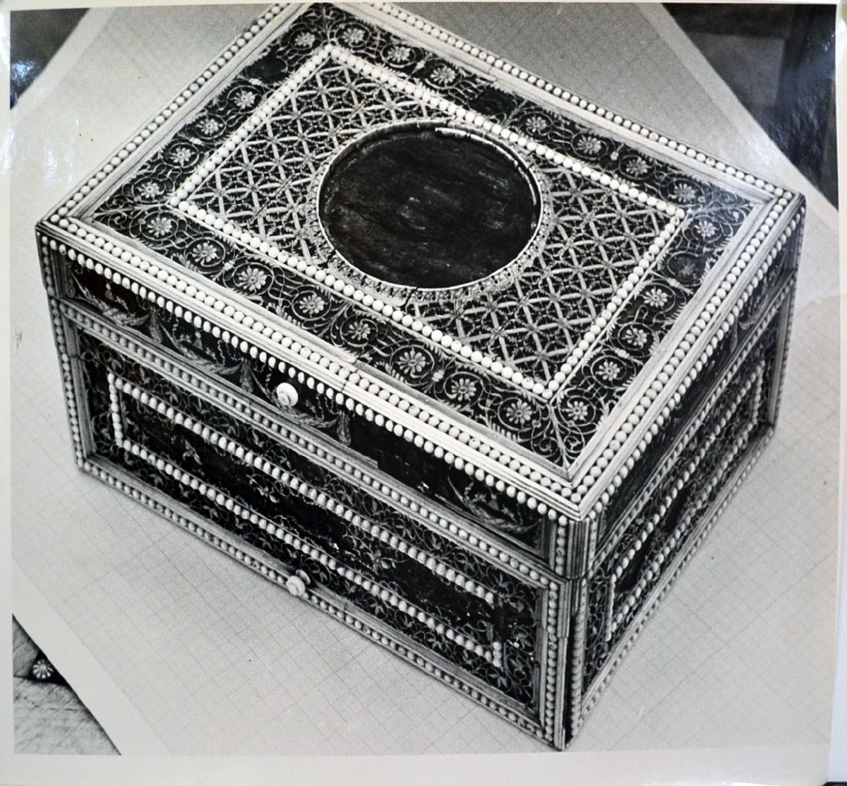 Шкатулка Анны Васильевны Розен, бывшая с ней в ссылке в Сибири. Из имения Розенов в Окнино Харьковской губернии. Изюмский краеведческий музей. Харьковская область, УССР. Автор - Б.Н. Карсонов. | 1972 г. Источник: ГАУК Курганский областной краеведческий музей https://vk.cc/cU7wt0