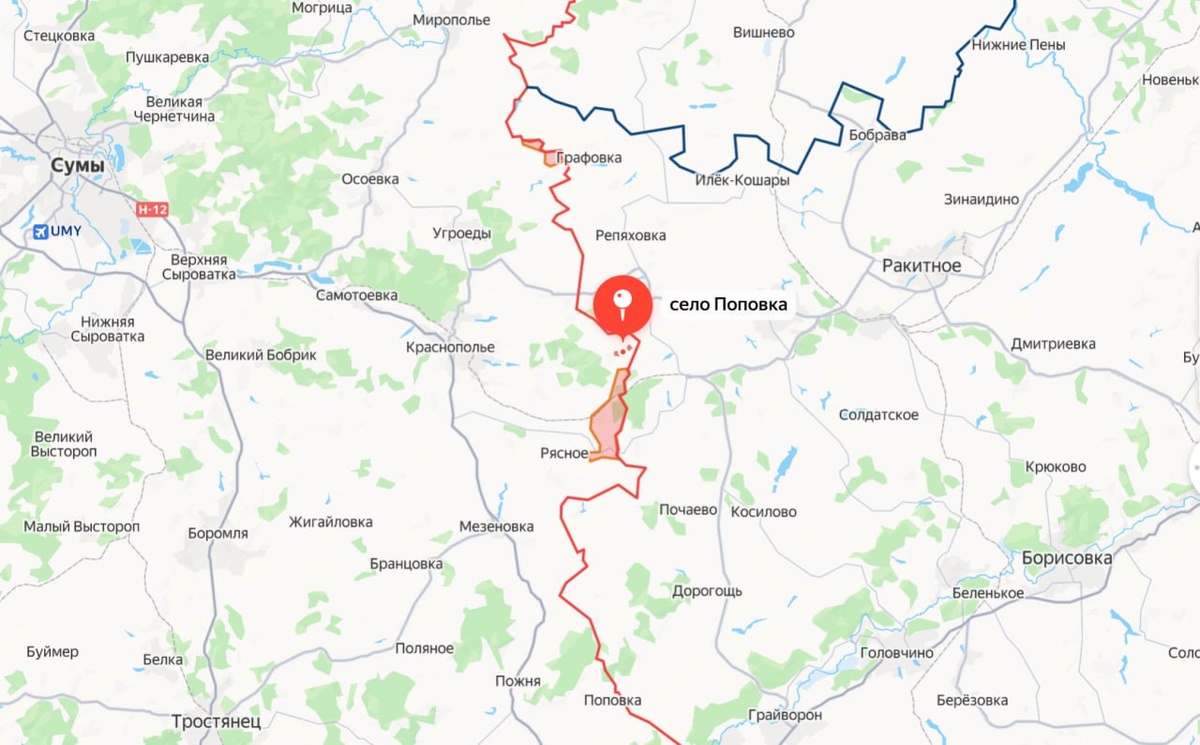 Министерство обороны России сообщает об освобождении населённого пункта Поповка Сумской области.