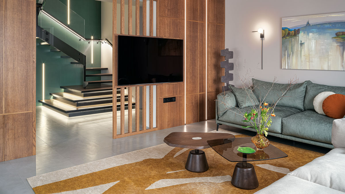 Яркий интерьер дома в коттеджном поселке