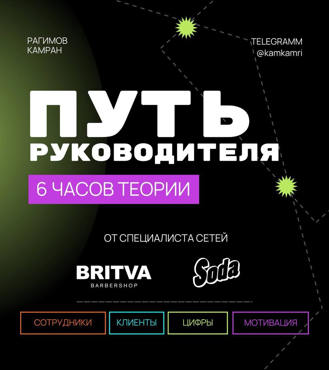 » ‼️Все деньги с мастер-класса будут направлены Валерию Безлюдному‼️ Дата - 28 февраля🗓️ Преподаватель - Рагимов Камран 5+ лет работает в BRITVA / SODA. Прошел путь от администратора до руководителя. Сейчас в управлении 13 филиалов. Запускал проекты с нуля (более 6 салонов), управлял командами, маркетингом, операционным контролем, финансами и аналитикой. Выстраивал стратегии по продвижению салона. Уже полгода ведет мастер-класс для владельцев и руководителей в сфере услуг. Обучил и привел к изменениям около 100 руководителей и администраторов. На МК разбираем: • как клиенты реально принимают решения✅ • почему новые не становятся постоянными✅ • где бизнес теряет деньги на пути клиента✅ • как возвращать потерянных гостей✅ • как выстраивать работу администраторов и мастеров✅ • как мотивировать без постоянного давления✅ • какие цифры смотреть и как с ними работать✅ • как планировать месяц и закрывать планы✅ После мастер-класса у вас останется: 1️⃣ четкое понимание слабых зон би