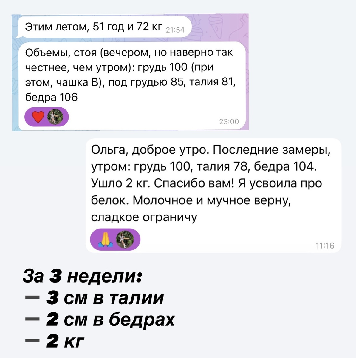 В карусели — отзыв участницы из нашей мини-группы «Отеки.стоп!». Посмотрите на эти цифры всего за 3 недели:
