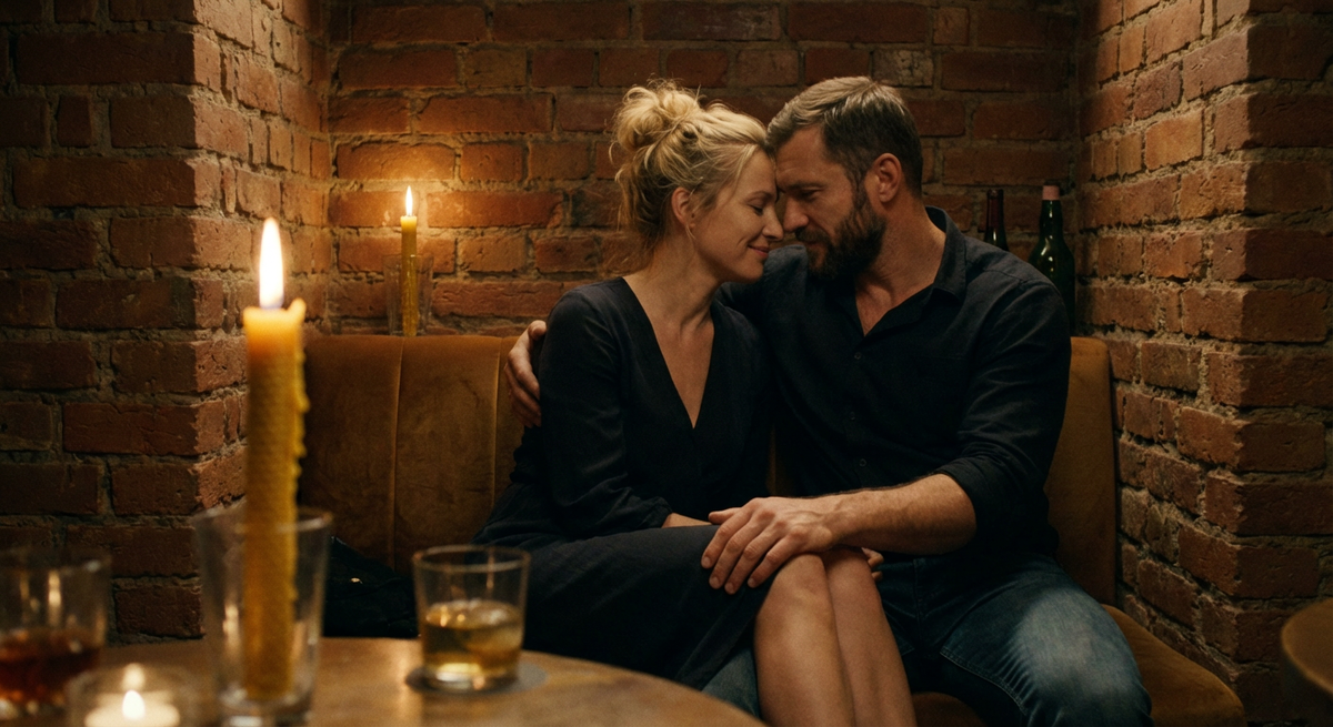 В этот момент Глеб машинально обвёл взглядом зал. В первой нише сидела пожилая пара, молча смотревшая в бокалы. Вторая была пуста. И третья… В третьей, самой дальней, у самой стены, горела высокая восковая свеча в толстом стеклянном стакане. Она отбрасывала дрожащие тени на кирпичную кладку и освещала два силуэта.