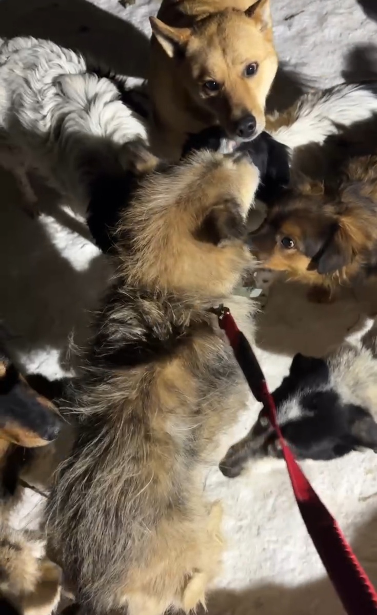 Вчера вечером произошла первая встреча трёх спасённых собак с большой семьёй Хвостиков в Калининграде.
