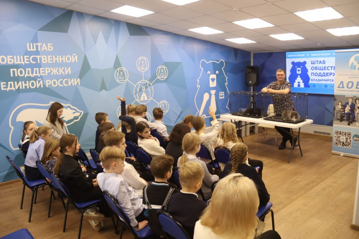 Координатор партпроекта «Единой России» «Защита животного мира» ветеринар Виталий Подопригора провел «урок добра» для четвероклашек одной из владимирских школ. А помогали ему трое хвостатых подопечных. Кузя — старожил в Социальном центре развития «Добра». В приют он попал уже взрослым котом — пристроить сложно, да и не особенно хочется — пусть самый первый постоялец станет талисманом, решил Виталий. Через заботливые руки Подопригоры прошли десятки животных. Как правило, судьба у всех одна — попадают к нему запуганными, голодными, больными. Он их лечит, выхаживает — и старается найти новый дом. А еще он приводит в свой Центр разных людей, взрослых и детей. Сначала просто познакомиться, пообщаться. А потом многие возвращаются, завязывается дружба. Нередко именно так четвероногие беспризорники находят для себя новую семью. Сегодня Виталий выбрал самых общительных и бесстрашных из своих питомцев, погрузил в переноски и поехал в Штаб общественной поддержки «Единой России» — проводить «урок