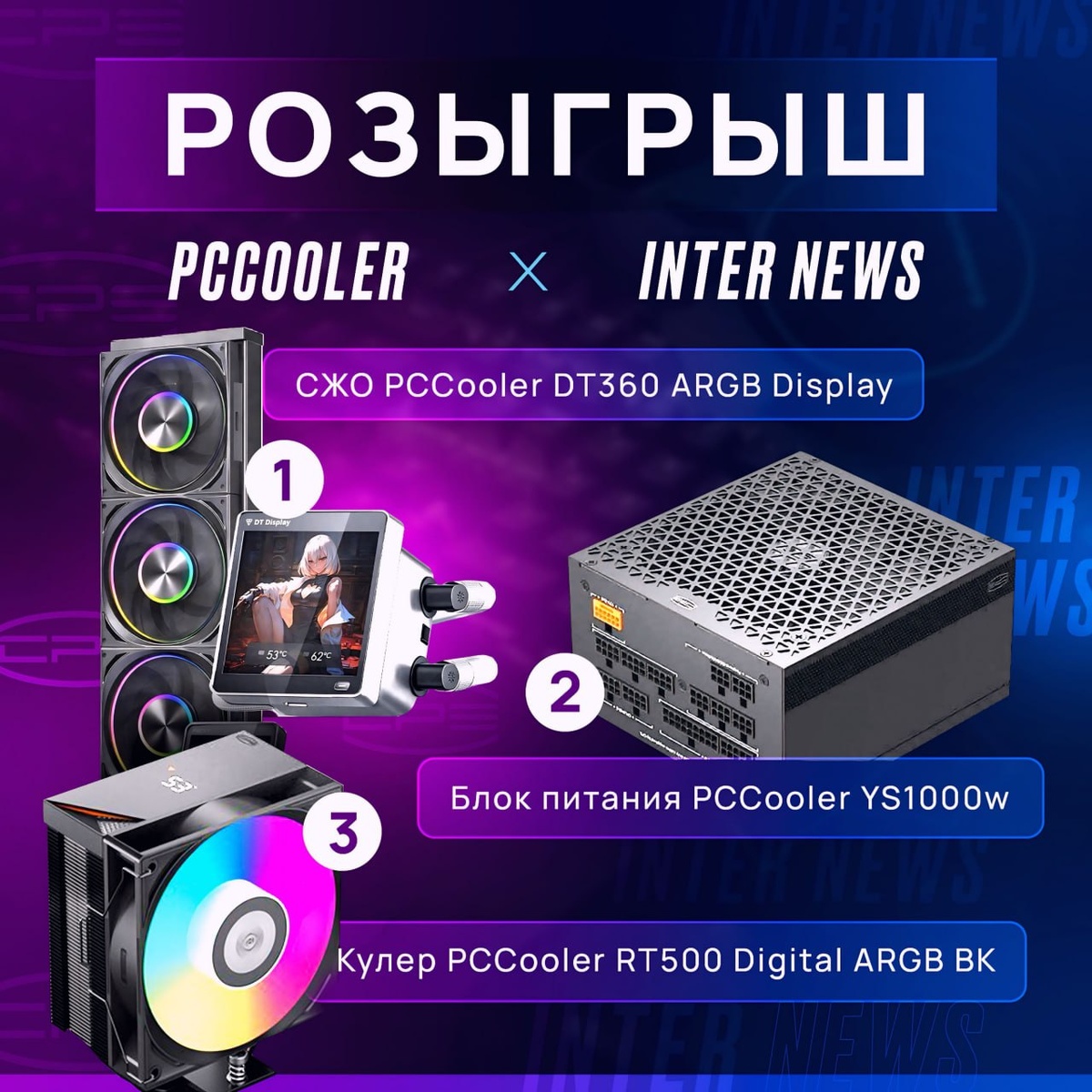 ❗️ Уже ЧЕРЕЗ ЧАС дня мы разыграем комплектующие от PCCooler за подписку, успей принять участие!!!