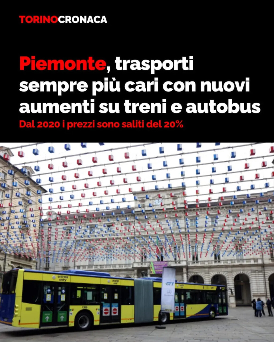 ✅ СПРАВКА: Эта новость переведена и размещена при помощи искусственного интеллекта Chat GPT без участия человека, в случае если вы заметили ошибку, или новость не соответствует реальному событию — сигнализируйте, исправим. 👉 Искренне Ваш Сержио Боттичелли: https://www.facebook.com/mercator.cz __________________ С 1 июля вступают в силу новые тарифы на региональный транспорт в Пьемонте. Повышения соответствуют уровню инфляции для региональных поездов и междугородних автобусов, причем увеличение тарифов в основном затронет абонементы: +10/50 евроцентов для недельных, +50 евроцентов до 2 евро для месячных и +4/18 евро для годовых, в зависимости от маршрутов. Также изменятся некоторые отдельные дальние рейсы (+10/20 евроцентов). С учетом корректировок за последние шесть лет общее увеличение составит около +20% по сравнению с 2020 годом. Также вырастут абонементы Formula (Gtt, Trenitalia и автобусы городской зоны): +10/40 евроцентов для недельных и +50 евроцентов до 1,50 евро для месячн