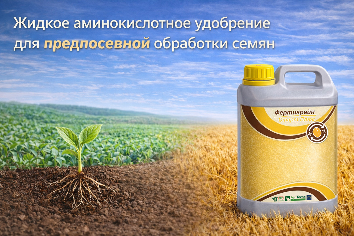 Ранние фазы развития культуры часто определяют итоговый результат сезона. Именно в этот период формируются равномерность всходов, скорость роста, первичная корневая система и способность растения переносить неблагоприятные условия. Даже небольшие отклонения на старте — холодные ночи, недостаток влаги, действие протравителей — могут отразиться на продуктивности. Фертигрейн Старт Плюс — жидкое аминокислотное удобрение для предпосевной обработки семян полевых культур, предназначенное для поддержки растений на старте развития. Первые недели после посева — это время, когда растение: Если на этом этапе всходы получаются неравномерными, часть растений отстаёт в развитии. В дальнейшем это часто приводит к разной фазности посевов, менее эффективному использованию влаги и питания и, как следствие, к потерям урожайности. 1) Более дружные и равномерные всходы