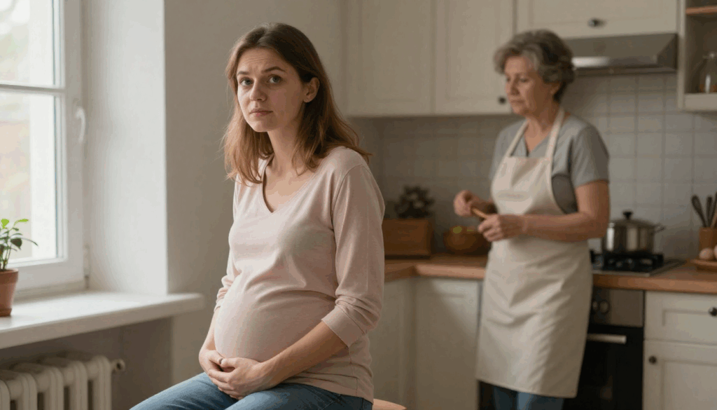 Открыла дверь. На пороге — девушка лет двадцати пяти, в расстёгнутой куртке, под которой выпирал округлый живот. Лицо бледное, на лбу капельки пота.