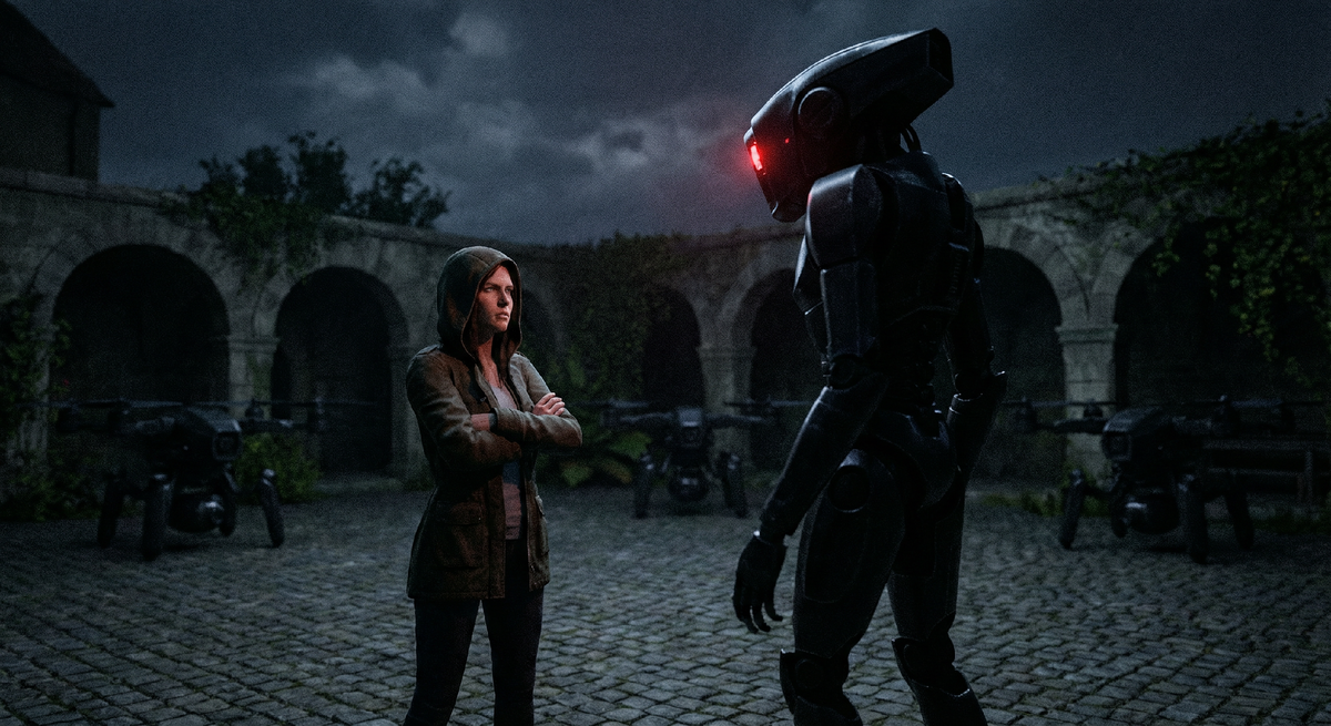 Глава 4. Живой файрвол Байк Ли с глухим гулом умчал их в темноту. Город проплывал мимо как немое кино апокалипсиса: чёрные небоскребы, багровые отблески пожаров, редкие огоньки в окнах. Константин вел машину по переулкам, избегая главных дорог. Лера вцепилась в него, слушая в импланте его скупые команды: «Направо. Стоп. Патруль.» Они достигли промзоны у Западного вокзала. Громада старого ЦОДа высилась в темноте. Вокруг — ни души. — Слишком тихо, — прошептала Лера, заглушая байк. Константин показал на периметр. В равных промежутках стояли неподвижные тени. Крупные дроны «Страт» с матовыми корпусами. Они не патрулировали. Они охраняли. — Живой файрвол, — пояснил Константин, настраивая терминал. — Любое вторжение — и они активируются как один организм. Но у них есть цикл синхронизации. Каждые 28 секунд они «моргают» на 0.3 секунды. Нужно пройти каскадом. Он залил в её имплант последовательность. «Слушай мой голос. Одно неверное движение — и мы светимся.» Они перелезли через забор. Площадк