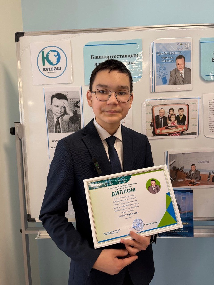 ! 📻 Быйыл бәйгегә 100-гә яҡын ғариза ҡабул ителде, 30-ҙы финалға үтте. Ҡыйғы, Дыуан, Салауат, Хәйбулла, Көйөргәҙе, Белорет, Баймаҡ, Мәләүез. Учалы райондары, Өфө гимназиялары, Сибай ҡалаһы, Силәбе өлкәһе әүҙем булды, Федоровка менән Илеш тә ҡушылды. "Диктор тауышы"ндағы яңылыҡ - ике тапҡыр Советтар Союзы Геройы Муса Гәрәев исемендәге Өфө дөйөм белем биреү мәктәп-интернатынан ҡатнашыусылар бар. 📍Абруйлы жюри улар араһынан 12 еңеүсене һайлап алды. ▫️I урынға Баймаҡ ҡалаһының 5-се дөйөм биреү мәктәбе уҡыусыһы Азамат Иҙелбаев һәм Әбйәлил районы Асҡар ауылының Таһир Күсимов исемендәге гимназия уҡыусыһы Бәхтийәр Муллахмәтов лайыҡ булды. 🔬 "Диктор тауышы"- уникаль проект. Уның төп маҡсаты - киләсәккә дикторҙар, журналистар әҙерләү, балаларҙың йөрәгенә осҡон һалыу, данлыҡлы диктор Әхәт Мортазиндың эшен дауам итеү.
