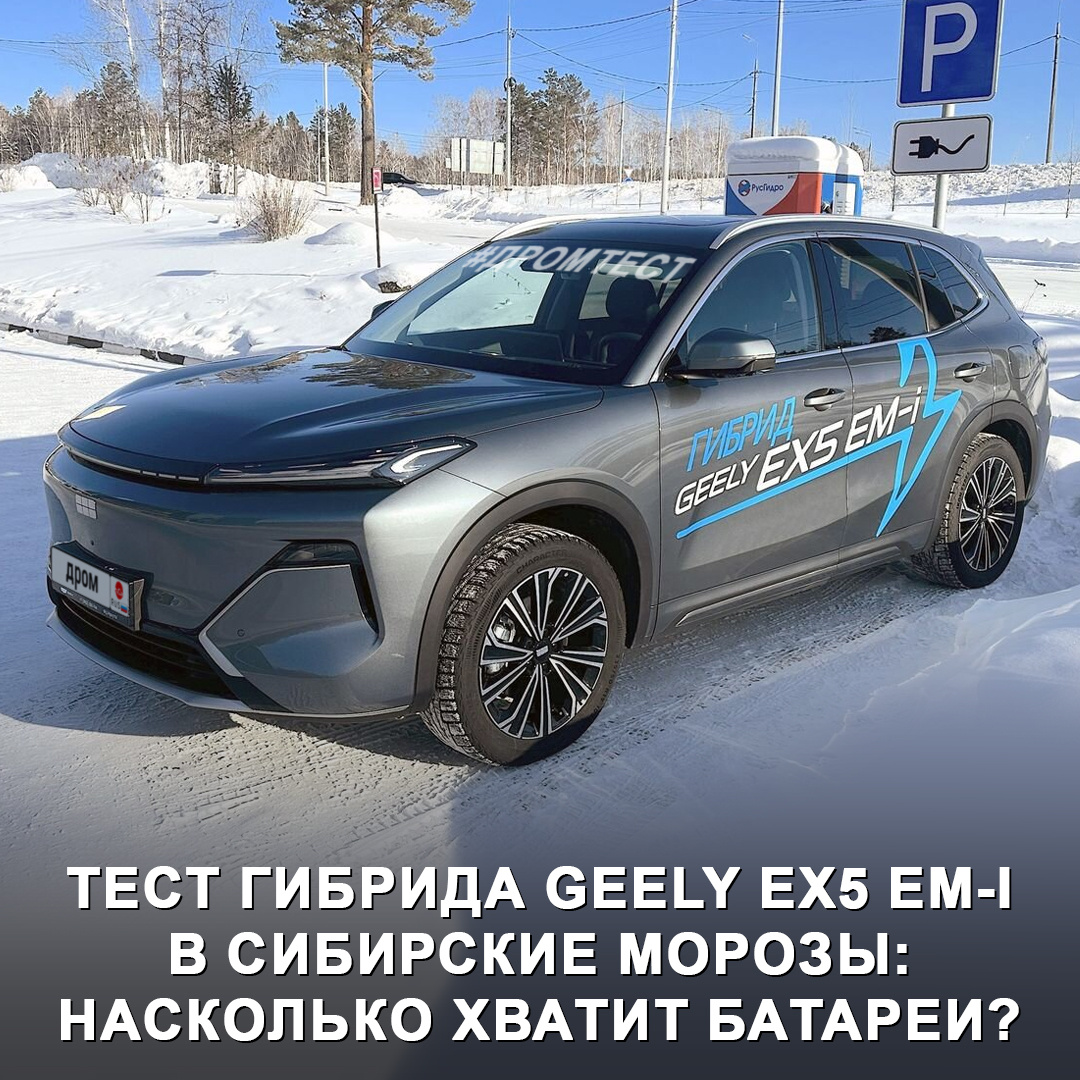 Протестировали гибридный Geely EX5 EM-i в сибирские морозы… А нужны ли вообще все эти электронавороты? 😯 Переднеприводный кроссовер мы взяли на испытания в Иркутске. С запуском у него никаких проблем нет — главное, чтобы 12-вольтовый аккумулятор был в порядке. А за состояние тяговой батареи отвечает система подогрева с жидкостным тепловым контуром. Кстати, даже в такую погоду тепло из воздуховодов в салоне появляется довольно быстро. Итак, на 95% заряда батареи с включённым на 22 °C климатом, обогревами руля и сидений, а также музыкой при температуре за бортом –18 °C EX5 EM-i смог проехать на электротяге… только 35 км. На следующий день после зарядки до 100% гибрид преодолел на одной батарее уже 55 км, что тоже не впечатляет. Кстати, средний расход Geely, судя по показаниям на приборке, за последние 1 700 км составлял 10,7 л — немало. В городских условиях ДВС 1,5 л работает только как генератор, на этих скоростях Geely довольно динамичен. А на трассе после 100 км/ч EX5 EM-i превращает