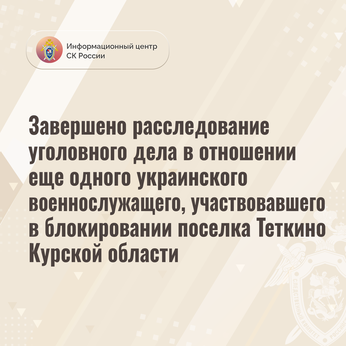 Завершено расследование уголовного дела в отношении еще одного украинского военнослужащего, участвовавшего в блокировании поселка Теткино Курской области
