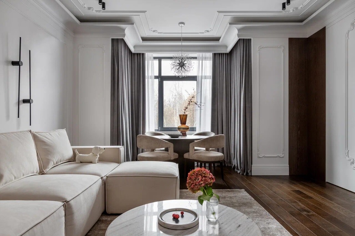 «Квартира молодой горожанки» Квартира площадью 70 м² расположена в одном из престижных районов Минска и создавалась для молодой девушки с активным ритмом жизни и тонким чувством эстетики. В основе планировочного решения — просторная кухня-гостиная-столовая,