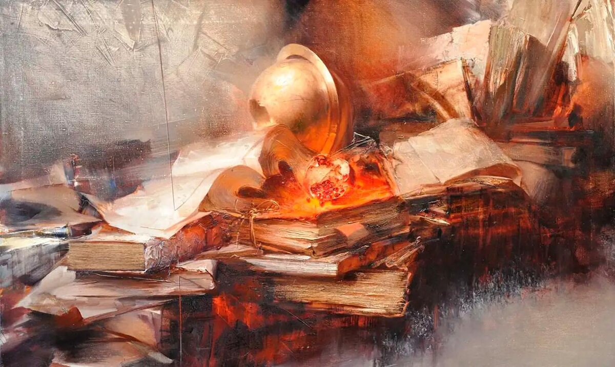 мышления. В его работах сочетаются классическая школа, внимательное отношение к деталям и особая поэтичность образов. Славинский умеет превращать повседневные предметы в носителей настроения, времени и личной истории, создавая живописные пространства, наполненные тишиной, светом и внутренним смыслом. Натюрморты Ивана Славинского — это не просто изображения предметов, а целые визуальные рассказы. В них каждая деталь продумана: свет мягко скользит по поверхности фарфора, стекла и ткани, цветовые отношения выстроены с почти музыкальной точностью, а композиция создает ощущение гармонии и покоя. Художник мастерски работает с фактурой и объемом, превращая простые вещи — книги, цветы, посуду, фрукты — в символы времени, памяти и созерцания. Его натюрморты погружают зрителя в атмосферу вдумчивого диалога с искусством и собственной внутренней тишиной.