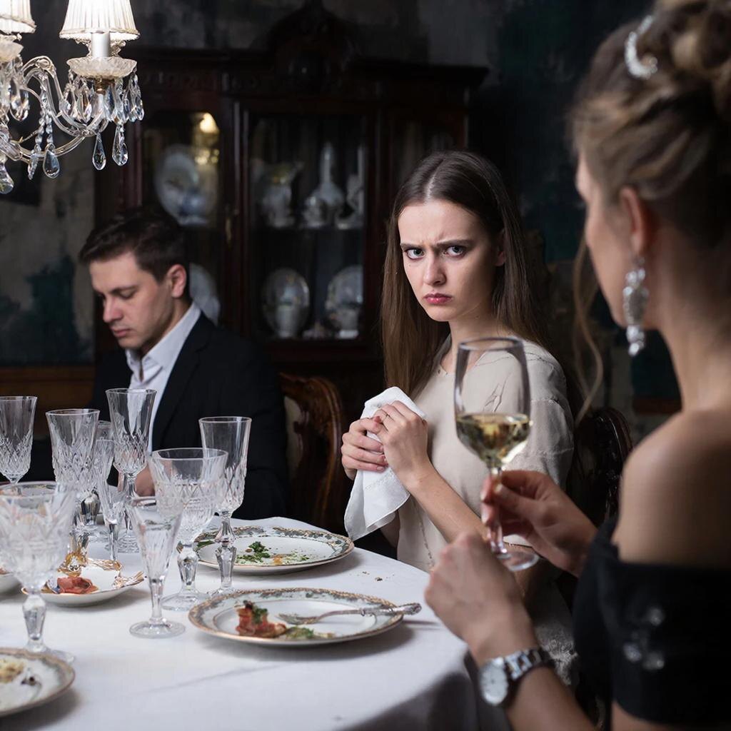 Время остановилось. Звон хрусталя, смех с других столов, даже тихая музыка — всё это ушло в белый шум. Я видела только её накрашенные губы, сложенные в улыбочку, и её холодные, оценивающие глаза. В них не было злости. Было презрение. Чистое, немотивированное презрение к тому, кто посмел войти в её идеальную семью и не соответствовать её стандартам.