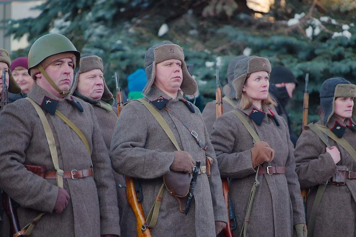Участников театрализованного события приветствовал губернатор Александр Беглов. Он поблагодарил участников реконструкции и всех, кто борется за сохранение исторической правды. Фото: Валентин Беликов/Город+ Подпишись на Город+: Telegram|MAX|ВК