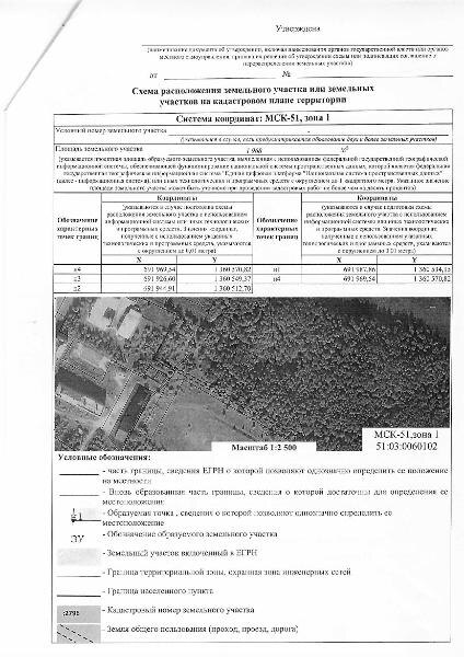 Название: Земельный участок с условным номером 51:03:0060102:891:ЗУ1, площадью 1968 кв.м, категория земель - земли населенных пунктов