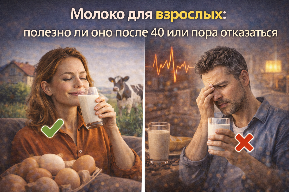 С молоком у взрослых отношения сложные. В детстве его навязывали как обязательный элемент здоровья. После 30–40 вдруг появляется ощущение, что “что-то не так”: тяжесть, вздутие, сомнения, статьи с заголовками “взрослым молоко не нужно”. Так полезно ли молоко после 40, или это продукт, с которым действительно стоит попрощаться? Как обычно, правда находится не в лозунгах, а в деталях. Молоко не становится автоматически вредным после 40. Но с возрастом меняется способность организма его переваривать и переносить. Для части людей молоко остаётся нормальным продуктом, для других — источником дискомфорта. Решает не возраст, а индивидуальная реакция и контекст питания. С возрастом у многих снижается активность фермента лактазы — он нужен для переваривания лактозы, молочного сахара. Это нормальный биологический процесс, а не болезнь. В детстве лактаза работает активно. У взрослого человека её уровень может снижаться, иногда довольно заметно. Отсюда и классические жалобы: вздутие, урчание, тяже