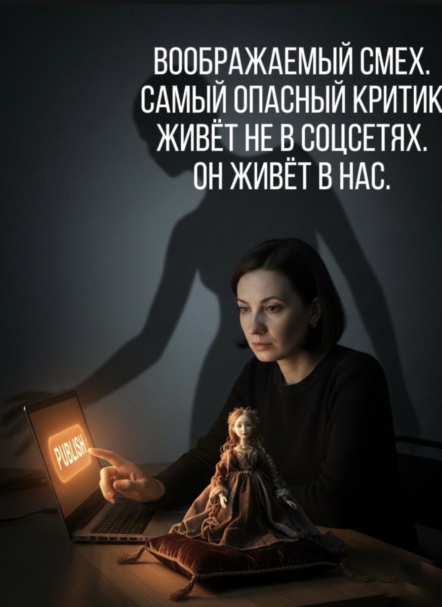 Вы хотите показать свою работу. Рисунок. Текст. Куклу. Видео. Рука тянется к кнопке "Опубликовать". И вдруг — Вы слышите смех. Не настоящий. Воображаемый. Чужой голос в вашей голове: "Ха! Серьёзно? Это?" "Кто ты такой, чтобы это показывать?" "Людям будет смешно." Вы убираете руку.Не публикуете. Прячете работу. Потому что уже услышали смех. Даже когда его нет.Знакомо? Этот внутренний голос, который озвучивает чужое осуждение. До того, как оно произошло. До того, как кто-то что-то сказал. Вы уже знаете, что они подумают. Уже слышите их смех. Но откуда он? Почему мы слышим его заранее? Давайте разберёмся.