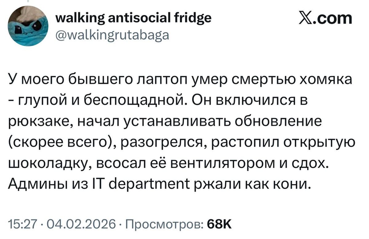 «Лаптоп умер смертью хомяка»: девушка рассказала историю самой нелепой поломки ноутбука.