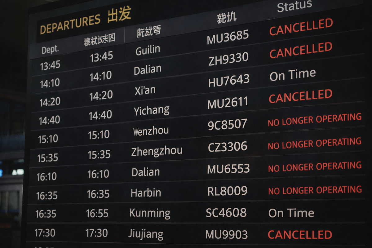 Как и в случае с железными дорогами в Японии, Китай не объявляет масштабных реформ. Рейсы просто исчезают из расписаний. Сначала убирают дневные вылеты, потом вечерние. Остаётся один рейс в несколько дней. Затем и он пропадает. Формально — оптимизация. Фактически — отказ от присутствия.