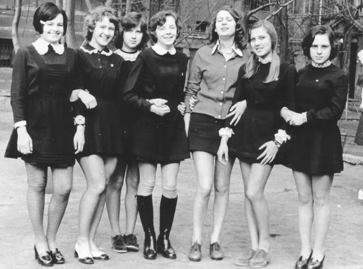 Да, сейчас тоже есть определенные нарушения. Но не такие же! Ярко окрашенные волосы, заметный макияж, джинсы, толстовки — все это не совместимо с правилами современной школы. А вот 50 лет назад недопустимым считались такие невинные вещи как резинки для волос вместо бантов, распущенные волосы и даже сережки! Каждый школьник с первого класса в стране Советов знал: до окончания школы он будет носить форму установленного образца и никакую другую. Для девочек это было шерстяное платье коричневого цвета, а для мальчиков костюм, состоящий из брюк, пиджака и светлой рубашки. Никаких других вариантов и быть могло. Длинные волосы, заплетенные в косичку и украшенные бантом: это был эталон прически для школьницы всех республик. Хвосты, а уже тем более распущенные волосы девочки не носили. Если же вдруг отваживались на такое, то могли получить выговор от директора школы. Носить сережки в школу отваживались не многие. Но даже те, кто решался на такой смелый поступок выбирали самые скромные и незам