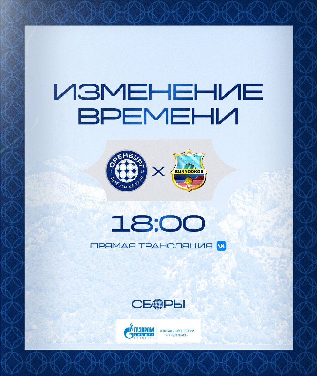 Время начала контрольной встречи с «Бунедкором» изменено❗️