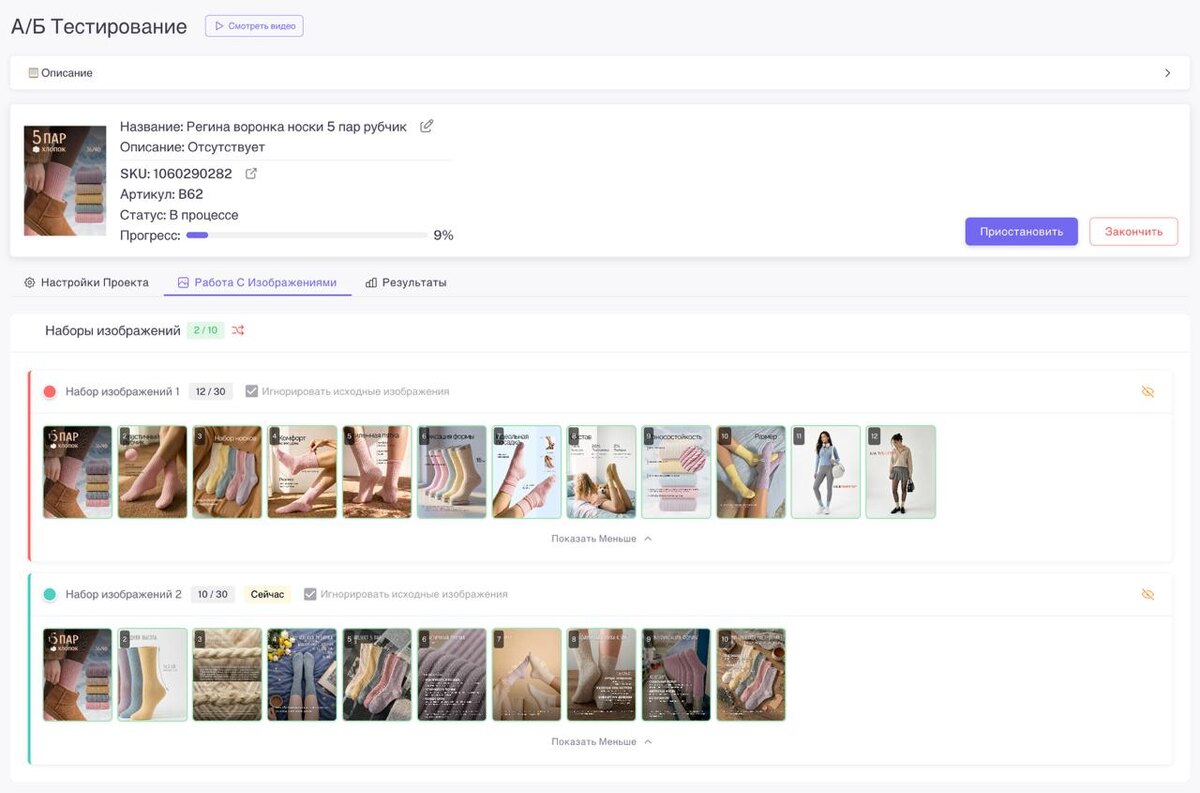 🔥 Сейчас финально тестируем в бою крупное обновление A/B-тестов, и скоро оно доедет до всех. Что появится: • Сеты изображений вместо одиночных Можно тестить не только главное фото, а целые связки: обложка + 2–29 следующих. Фактически сравниваем воронки картинок, а не один кадр. • Автоподтяжка активных РК из Ozon Все действующие кампании по товару теперь будут подтягиваться прямо в Sellium. Не нужно лезть в личный кабинет Озона, искать ID и что-то сверять. • Отчёт по каждой РК отдельно В результатах увидите: • общие цифры по всем компаниям, • и разрез по каждой РК — сразу видно, какое изображение тащит в поиске, а какое в «поиске и рекомендациях». • Установка победителя на карточку в один клик После завершения теста можно тут же поставить победившее или любое другое изображение на карточку Ozon — прямо из Sellium, без захода в ЛК Озон. • Срок теста — до 14 дней Максимальный срок расширяем с 7 до 14 дней. Это сильно помогает по товарам с небольшим трафиком. • Отсекать слабые изо