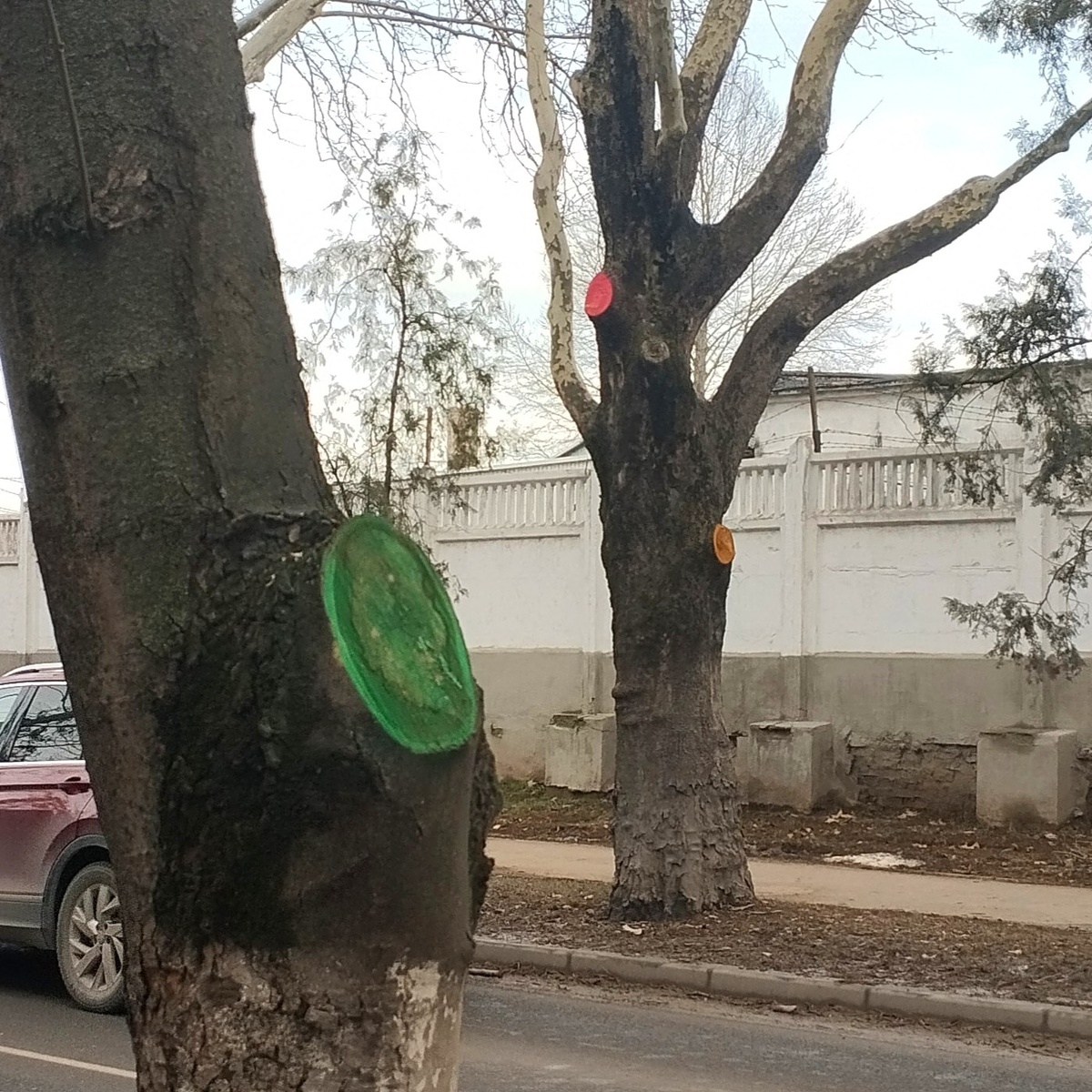 Выдержка из Кото-википедии: "Американский клён считается инвазивным видом (вытесняет местные виды растений (иву, тополь), из-за высокой скорости разрастания густой кроны дерева, в тени которой не выживают даже теневыносливые травы). В феврале 2026 года Рослесхоз приравнял клён по вредоносности к борщевику, а владельцам земель грозят штрафы до 700 тысяч рублей за бездействие в вырубке." Вероятно с целью борьбы с американским клёном, коммунальщики активизировались. Правда под раздачу попали все деревья подряд. Оно и понятно, откуда простой работяга знает - тополь, липа или клён тут перед ним стоит? Он же не ботаник? Сказали пилить, значит пилить. Одно радует, чтобы сгладить печальку, пеньки покрывают весёлыми разноцветными красками. Дело происходит вдоль дороги, поэтому в ходу знакомые каждому автомобилисту цвета - кислотно красный, жёлтый и зелёный (наверно чтобы не сильно травмировать их психику). Так что лето тут обещает быть более жарким, чем раньше... Которепортёр
