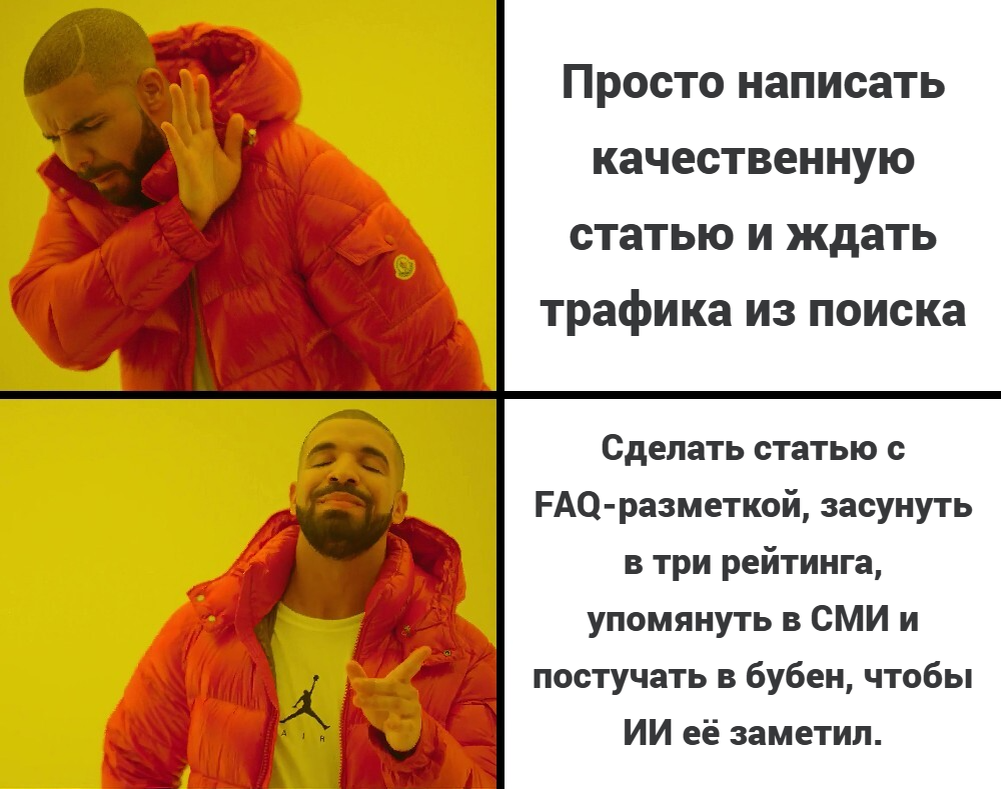- Ставка на количество, а не на авторитетность В GEO качество контента и площадок, где он размещен, важнее объема. Десять пустых статей на слабом сайте не дадут того эффекта, который принесет одна экспертная публикация в крупном СМИ. Нейросети очень чувствительны к репутации первоисточника: если о вас не говорят на трастовых ресурсах, ИИ побоится рекомендовать вас пользователю.