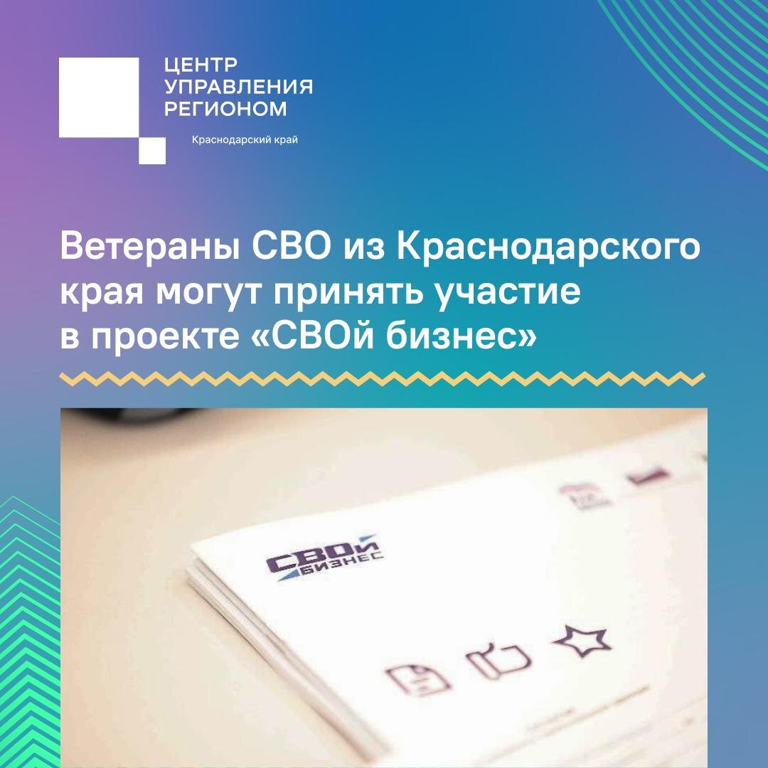 Его главная задача — помочь участникам спецоперации стать предпринимателями. Очный пятидневный интенсив проведёт кубанский центр «Мой бизнес». К образовательной программе могут присоединиться участники СВО и ветераны боевых действий, завершившие службу в армии более 6 месяцев назад. Подать заявку на участие в проекте «СВОй бизнес» можно по ссылке.