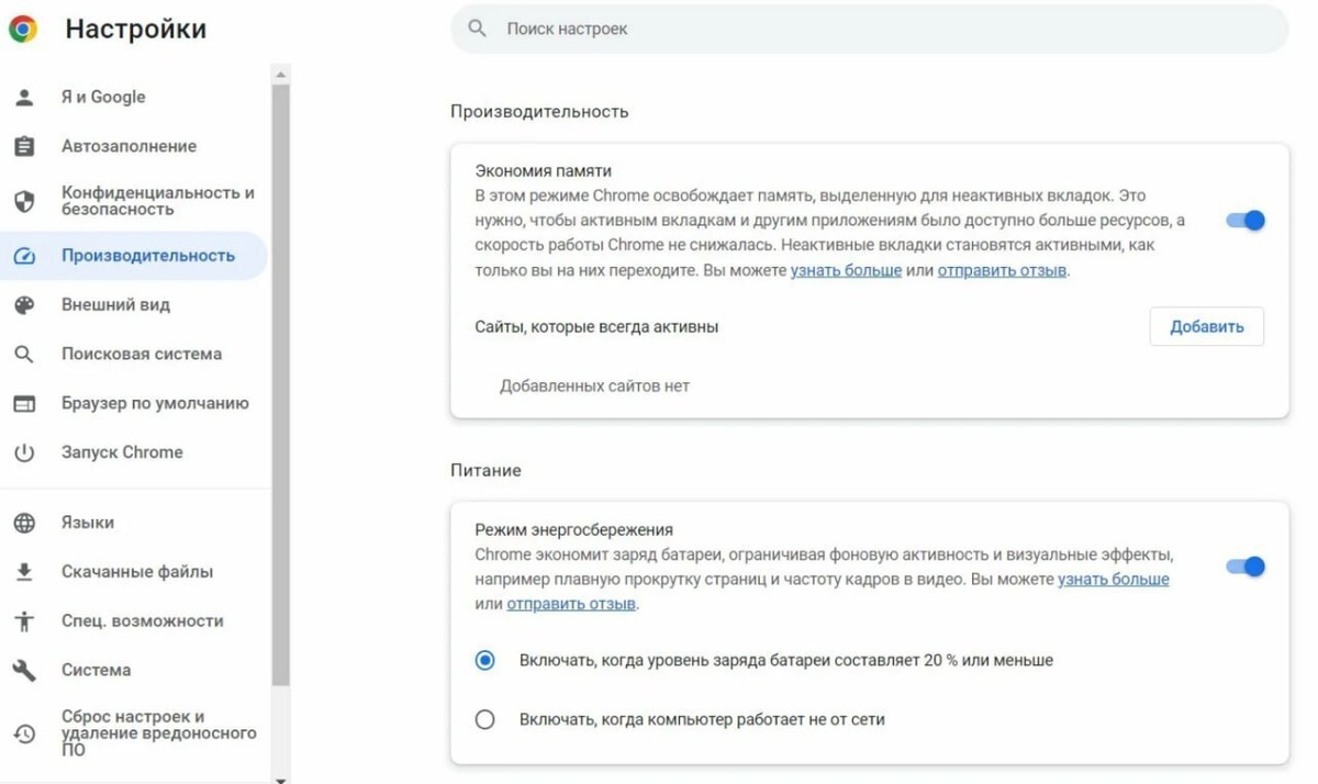 🧠⚡️ Если браузер со временем начинает тормозить, а вкладок открыто больше, чем планировалось — проблема знакомая. Хорошая новость: в Chrome есть встроенный режим, который реально снижает нагрузку на ОЗУ 👌 Он автоматически «усыпляет» неактивные вкладки и освобождает память для тех, которыми ты пользуешься прямо сейчас. Работает тихо, без лишних танцев с бубном. Как включить: Открой Google Chrome на компьютере (Windows, macOS или Chrome OS). Нажми на три точки в правом верхнем углу браузера. В меню перейди в «Настройки». Слева найди раздел «Производительность». Включи опцию «Экономия памяти» — готово ✅ После этого Chrome станет заметно легче для системы, особенно если ты любишь держать десяток вкладок «на потом». Мелкая настройка, а эффект ощущается сразу 🚀 #Chrome #Лайфхаки #Браузер #ОперативнаяПамять #Оптимизация #Компьютер