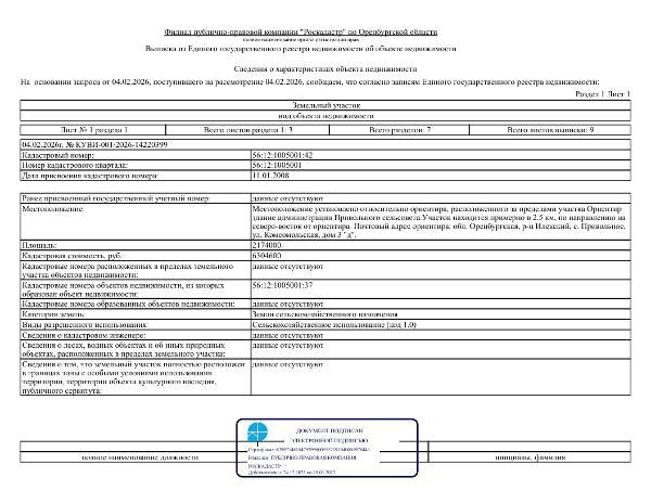пределами участка. Ориентир здание администрации Привольного сельсовета. Участок находится примерно в 2.5 км, по направлению на северо-восток от ориентира. Почтовый адрес ориентира: обл. Оренбургская, р-н Илекский, с. Привольное, ул. Комсомольская, дом 3 «д». Площадь: 2174000 кв.м. Земли сельскохозяйственного назначения. Сельскохозяйственное использование (Код 1.0) Канал: Госземля Оренбургская область Область: обл Оренбургская Район: м.р-н Илекский Населенный пункт: с.п. Привольный сельсовет, с Привольное Локация: Смотреть на карте ВРИ: Сельскохозяйственное использование Кадастровый номер: 56:12:1005001:42 Кадастровая стоимость: - Вид сделки: Аренда Площадь: 2174000 м² Начальная цена: 94569.00 руб. Дата завершения: 24.02.2026 Подробнее: ГИС ТОРГИ #госземля #земляотгосударства #земля #земельныйучасток #земельныеторги #торги #аукцион #арендаземли #аренда #оренбургскаяобласть