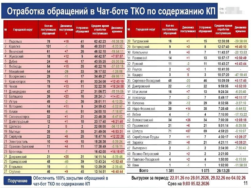 В ряде округов Московской области уже несколько недель наблюдается мусорный коллапс. Согласно данным статистики обращений на портал Добродел на 5 февраля, 23 округа задыхаются от мусора. Больше всего обращений на ненадлежащее содержание контейнерных площадок поступило из Королёва (101), Красногорска (79), Подольска (78). Далее идут Химки (69), Ленинский (61), Люберцы и Можайский (по 54), Истра (49), Домодедово (43), Мытищи (38) и Солнечногорск (32). Несмотря на то, что Чехов не вошёл в десятку, он находится в красной зоне (19), пропустив вперёд Серпухов, Балашиху и Воскресенск. Цифры вроде и не большие, но ситуация критическая, чего не скажешь о квитанциях на оплату услуг по вывозу отходов – они приходят исправно. Мусорный коллапс – это угроза экологии и здоровью жителей региона. Вопрос всё тот же: доколе?