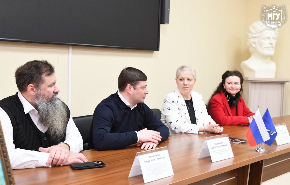 ΠΎΡΠ½ΠΎΡΠ΅Π½ΠΈΠΉ Ρ ΠΏΡΠ΅Π΄ΡΡΠ°Π²ΠΈΡΠ΅Π»ΡΠΌΠΈ Π‘ΠΠ±ΠΠ£ βΆοΈ ΠΠΎ Π²ΡΡΡΠ΅ΡΠ΅ ΠΏΡΠΈΠ½ΡΠ»Π° ΡΡΠ°ΡΡΠΈΠ΅ ΡΠ΅ΠΊΡΠΎΡ ΠΠΠ£ ΠΈΠΌΠ΅Π½ΠΈ Π.Π. ΠΡΠΈΠ½Π΄ΠΆΠΈ ΠΠ°ΡΠΈΡΠ° ΠΠ½Π°ΡΠΎΠ»ΡΠ΅Π²Π½Π° Π‘ΠΈΠ²ΠΎΠ»Π°ΠΏ, Π° ΡΠ°ΠΊΠΆΠ΅ ΠΏΡΠ΅Π΄ΡΡΠ°Π²ΠΈΡΠ΅Π»ΠΈ Π‘ΠΠ±ΠΠ£: β Π‘Π΅ΡΠ³Π΅ΠΉ ΠΠ»Π°Π΄ΠΈΠΌΠΈΡΠΎΠ²ΠΈΡ ΠΠ½Π΄ΡΡΡΠΈΠ½, ΠΏΡΠΎΡΠ΅ΠΊΡΠΎΡ ΠΏΠΎ ΠΌΠ΅ΠΆΠ΄ΡΠ½Π°ΡΠΎΠ΄Π½ΠΎΠΉ Π΄Π΅ΡΡΠ΅Π»ΡΠ½ΠΎΡΡΠΈ Π‘ΠΠ±ΠΠ£; β ΠΡΡΡΡ ΠΡΡΠ΅ΡΠ»Π°Π²ΠΎΠ²ΠΈΡ ΠΠ°Π²ΡΠΈΠ»Π΅Π½ΠΊΠΎ, ΠΌΠΈΡΡΠΈΠΎΠ½Π΅Ρ Π ΡΡΡΠΊΠΎΠΉ ΠΡΠ°Π²ΠΎΡΠ»Π°Π²Π½ΠΎΠΉ Π¦Π΅ΡΠΊΠ²ΠΈ, ΠΊΠΎΠ½ΡΡΠ»ΡΡΠ°Π½Ρ ΠΏΡΠΎΡΠ΅ΠΊΡΠΎΡΠ° ΠΏΠΎ ΠΌΠ΅ΠΆΠ΄ΡΠ½Π°ΡΠΎΠ΄Π½ΠΎΠΉ Π΄Π΅ΡΡΠ΅Π»ΡΠ½ΠΎΡΡΠΈ, ΡΡΠΊΠΎΠ²ΠΎΠ΄ΠΈΡΠ΅Π»Ρ ΠΊΡΠ»ΡΡΡΡΠ½ΠΎ-Π³ΡΠΌΠ°Π½ΠΈΡΠ°ΡΠ½ΠΎΠΉ ΠΌΠΈΡΡΠΈΠΈ Π‘ΠΠ±ΠΠ£; β ΠΠ°Π»ΠΈΠ½Π° ΠΠΎΠ½ΡΡΠ°Π½ΡΠΈΠ½ΠΎΠ²Π½Π° ΠΡΠΊΠΎΠ²Π°, Π΄ΠΎΡΠ΅Π½Ρ ΡΠ°ΠΊΡΠ»ΡΡΠ΅ΡΠ° ΠΈΡΠΊΡΡΡΡΠ², ΡΡΠ΅Π½ΡΠΉ ΡΠ΅ΠΊΡΠ΅ΡΠ°ΡΡ Π£ΡΠ΅Π½ΠΎΠ³ΠΎ ΡΠΎΠ²Π΅ΡΠ° ΡΠ°ΠΊΡΠ»ΡΡΠ΅ΡΠ° ΠΈΡΠΊΡΡΡΡΠ² Π‘ΠΠ±ΠΠ£, Π»Π°ΡΡΠ΅Π°Ρ ΠΌΠ΅ΠΆΠ΄ΡΠ½Π°ΡΠΎΠ΄Π½ΡΡ