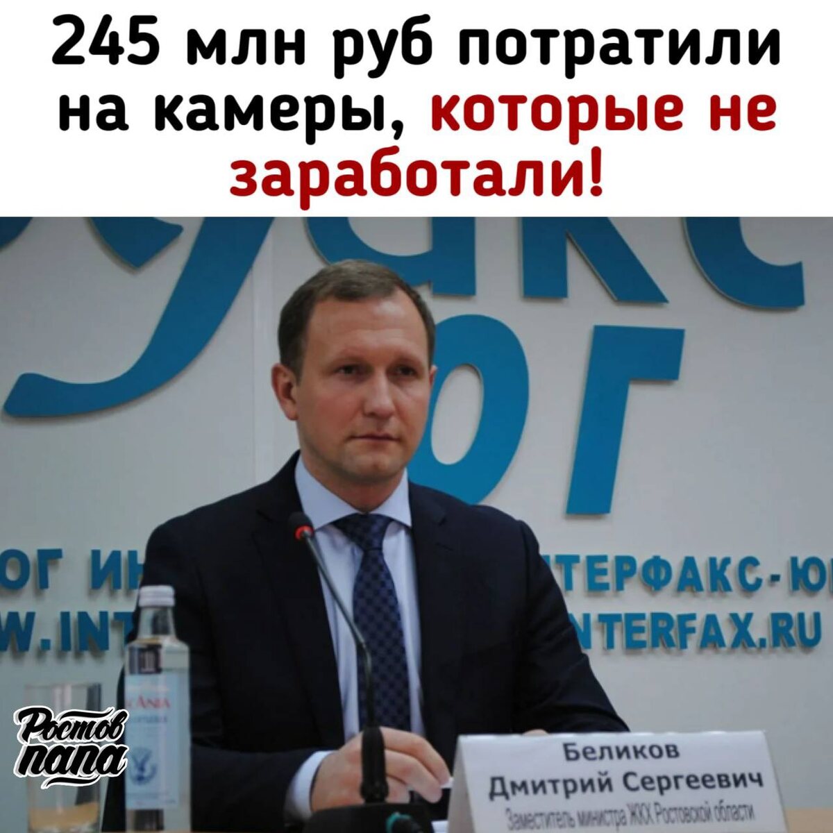 ! Его подозревают в хищении 245 млн рублей. Беликов заключил контракт на установку 85 комплексов фотовидеофиксации. Но камеры так и не появились по факту, а подрядчик деньги не получал. Сейчас следователи разбираются в схеме и ищут всех причастных, сообщают СМИ Во дела, «мёртвые» камеры 👉🏻Новости №1 в Ростове 💌Прислать новость/фото Ростов Папа теперь в Ⓜ️🅰️❌