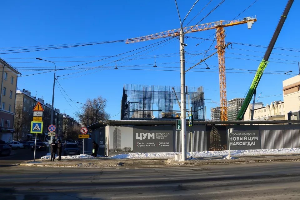 На проспекте Ленина в Барнауле продолжается строительство нового высотного ЦУМа, который станет новой архитектурной доминантой центра