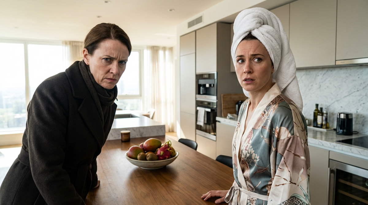На кухне тоже царило обновление. Встроенная техника, глянцевые фасады, огромный двухкамерный холодильник. На столе стояла тарелка с экзотическими фруктами и открытая коробка дорогих конфет.