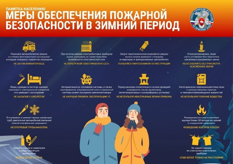 ☝️МЧС России по Пермскому краю напоминает меры пожарной безопасности в зимний период