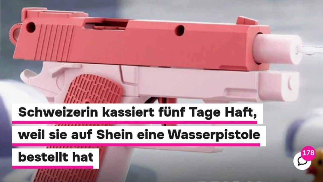 Для этого она заказала на китайской платформе Shein водяной пистолет за 2,78 франка. Вместо игрушки через несколько месяцев к ней пришли два полицейских, как сообщает передача SRF «Kassensturz». Причина — швейцарский закон об оружии. Согласно ему, наказуем не только ввоз настоящего оружия, но и заказ и публичное использование предметов, которые можно спутать с реальным оружием. По мнению юстиции, это относилось и к модели, заказанной жительницей Тичино, несмотря на её розовый цвет. За свой заказ женщина получила условный тюремный срок в пять дней. «Уголовное правосудие было задействовано из-за водяного пистолета. Где же здравый смысл?» — возмущается она в разговоре с SRF. Она обратилась к адвокату, и после его вмешательства условное лишение свободы было заменено на условный денежный штраф в размере 150 франков. Это не первый случай в Швейцарии, когда человек сталкивается с проблемами из-за покупки фальшивого пистолета. Депутат Совета кантонов от кантона Вале Беат Ридер (партия «Цент