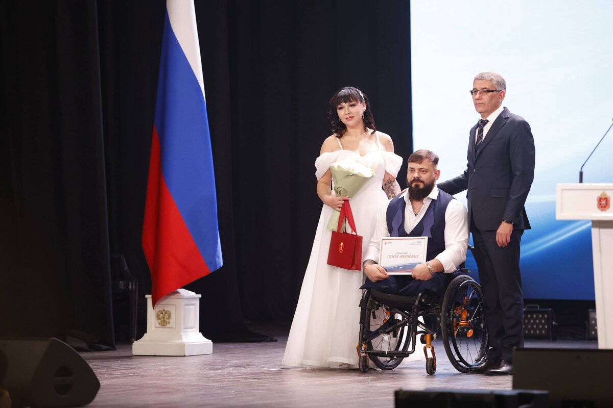 На торжественном мероприятии в честь Дня семей защитников Отечества губернатор Дмитрий Миляев поздравил родственников бойцов и организаторов патриотических мероприятий. Первыми поздравлений удостоились молодожены — Евгений и Маргарита Ивановы. Напомним, туляк пошел добровольцем на СВО и получил тяжелое ранение. Но это не остановило мужчину на пути к высоким достижениям в спорте. Евгений установил мировой рекорд, сдвинув на 4,5 метра ж/д вагон весом 24 тонны всего за 43 секунды. Супругой Евгения стала главный специалист центра «Герой 71» в Новомосковске. Пара связала себя узами брака за час до начала торжественного мероприятия в Тульском областном центре молодежи. «Здорово, что ребята сегодня на этой сцене и у них замечательный праздник. Это круто, это замечательно. Продолжают семейные традиции», — сказал Дмитрий Миляев. По теме: