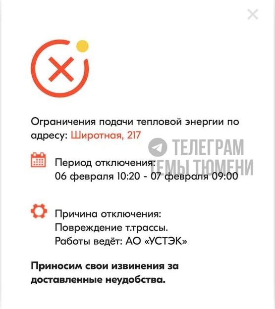 На сайте УСТЭК предоставлена информация об отключениях: на Восточке, Доме Обороны, Войновке и в центре до завтрашнего дня не будет отопления и ГВС из-за повреждения на теплотрассе. В список адресов попали дома на улицах: — Свердлова — Энергостроителей — Широтной — Стационной — 30 лет Победы — Полевой Тюменцы переживают за здоровье детей: ночью обещают до -20 градусов, а некоторые еще и болеют ОРВИ. ❤️ Подписаться | Предложить новость | Дать «буст» | Мы в МАХ