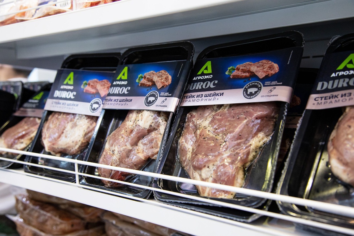 % Максимальный рост холдинг показал в части выпуска продукции в потребительской упаковке под брендами «АГРОЭКО» и «DUROC». По сравнению с 2024 годом объёмы производства в этом сегменте возросли более чем в 1,5 раза – с 9 до 15 тыс. тонн. В настоящее время компания поставляет брендированную продукцию во все ключевые федеральные и локальные торговые сети. #Агроэко #свинина Подробнее ↗️