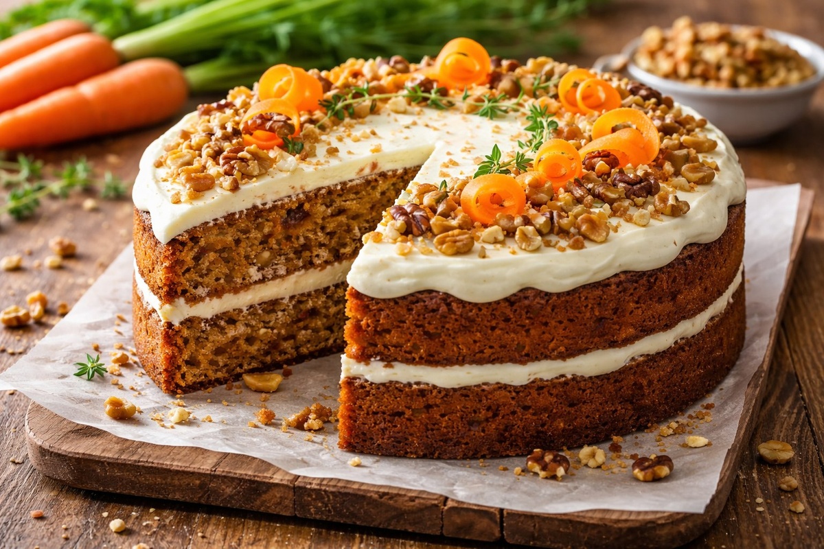 Морковный пирог — это настоящий праздник вкуса и аромата, который покорит даже самых взыскательных гурманов! Представьте себе нежное, влажное тесто с яркими нотками корицы и ванили, в котором прячется сладкая морковь и хрустящие грецкие орехи. Этот пирог идеально подходит как для семейного чаепития, так и для праздничного стола. Этот морковный пирог — идеальный выбор для тех, кто любит сочетание полезных ингредиентов и насыщенного вкуса. Попробуйте приготовить его дома, и он обязательно станет вашим любимым рецептом! 🍰 Рецепт морковного пирога, который стоит попробовать! Ингредиенты: - 300 г мелко натертой моркови - 100 г грецких орехов - 260 г муки - 1 ч. л. соды - 1,5 ч. л. разрыхлителя - 0,5 ч. л. соли - 1,5 ч. л. молотой корицы - 4 крупных яйца - 300 г сахара - 1 стакан (240 мл) подсолнечного масла (или оливкового/кукурузного) - 2 ч. л. ванильного экстракта - Глазурь из творожного сыра (по желанию) Приготовление: 1. Разогрейте духовку до 180°C. Форму смажьте маслом и присыпьте м