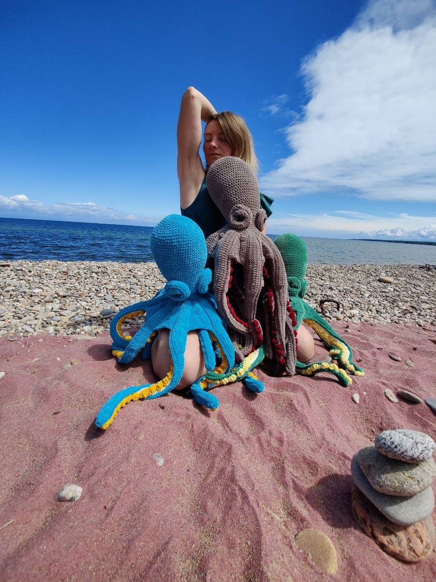 😘 У меня творческие новости: сейчас в процессе зайчик и мой любимый проект — осьминог 🥰 Листала архивные фото и поняла, как же сильно я соскучилась по вязанию своих осьминожек. Совсем скоро покажу, что получается! ✨ Как ни как вяжу его с лета 🤤 Чем планируете заниматься в выходные? Делитесь планами в комментариях! ❤️