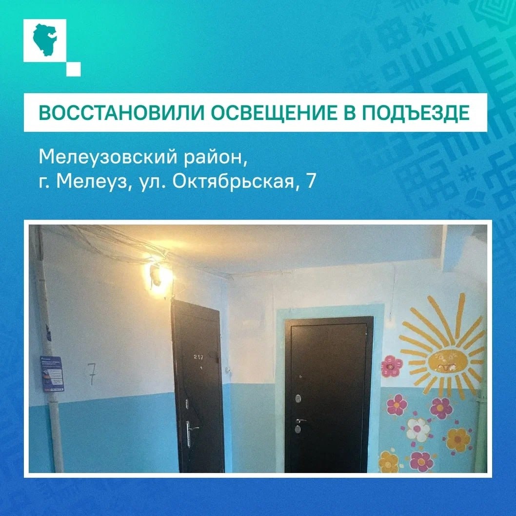В Мелеузе по улице Октябрьской в доме №7 восстановили освещение в подъезде