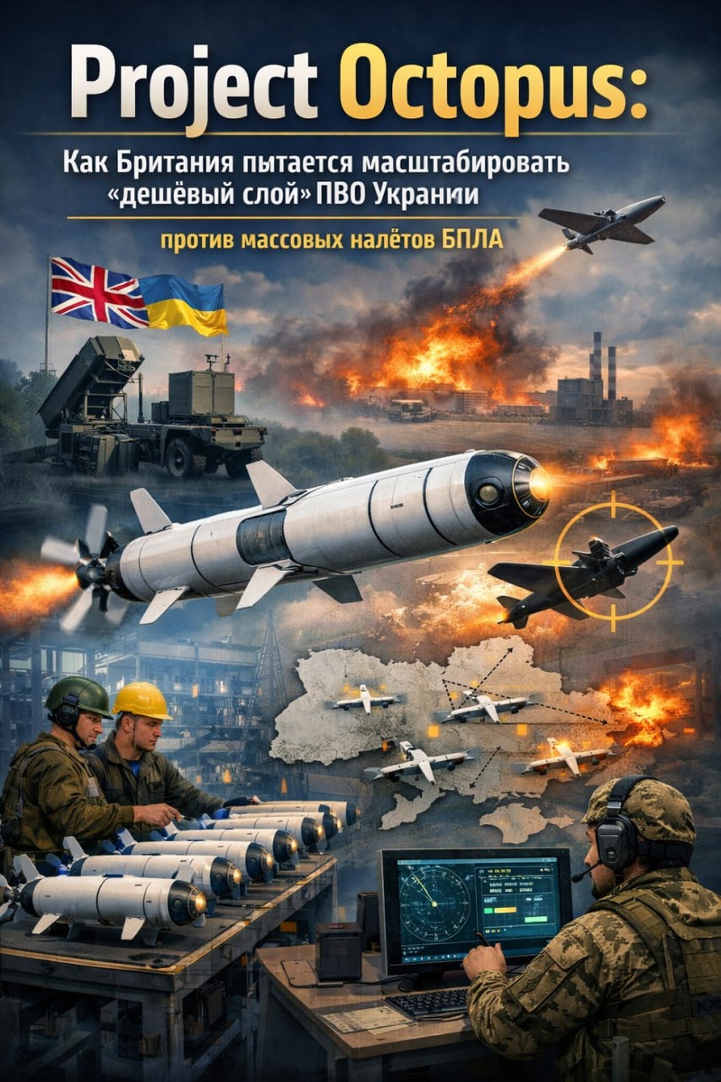 Министерство обороны Великобритании представило новые подробности проекта «Осьминог» — совместной британско-украинской инициативы по наращиванию производства беспилотных летательных аппаратов-перехватчиков для нужд Украины. По своей сути, проект «Осьминог» в британской трактовке — это попытка закрыть самый болезненный разрыв украинской ПВО последних лет: массированные налёты дешёвых ударных БПЛА (типа Shahed/«Герань»), на которые экономически и организационно невыгодно тратить дефицитные зенитные ракеты. 👤 Антон Михайлов ↗️ Подпишись на 🌐🌐🌐