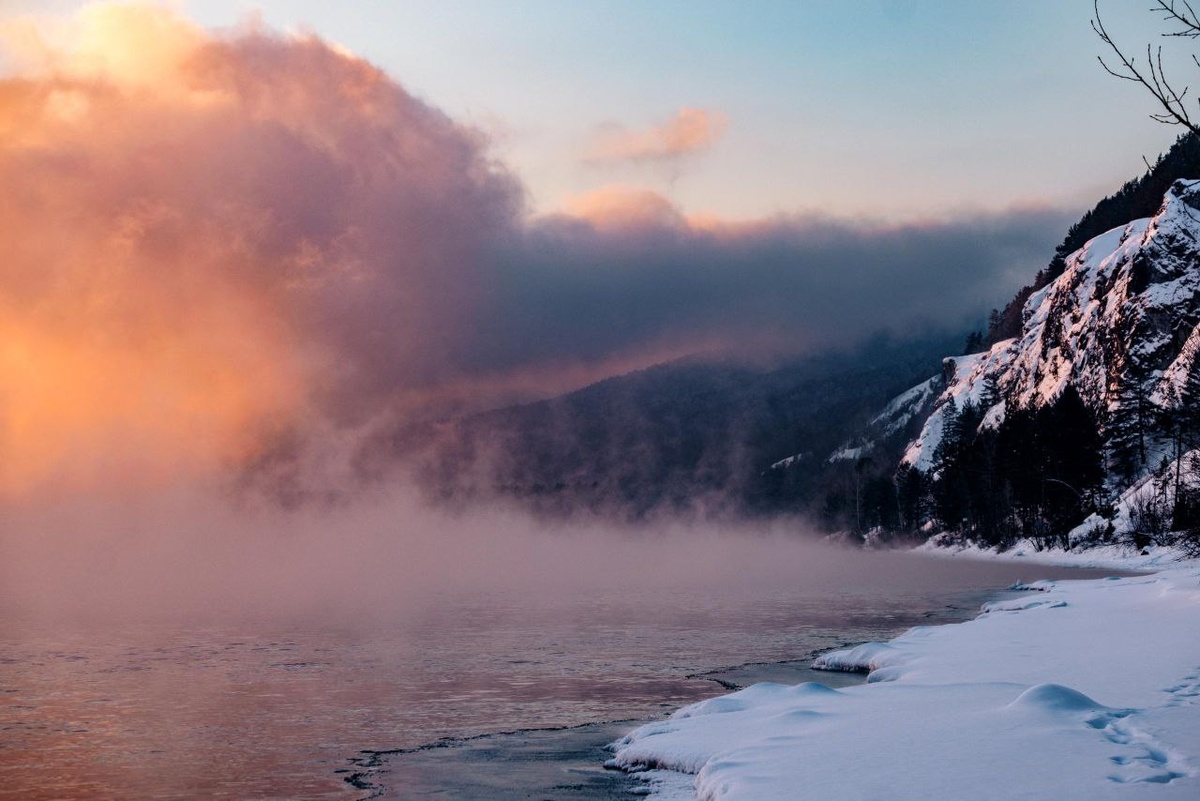 🌟Закат на реке Енисей, вид в сторону посёлка Усть-Мана