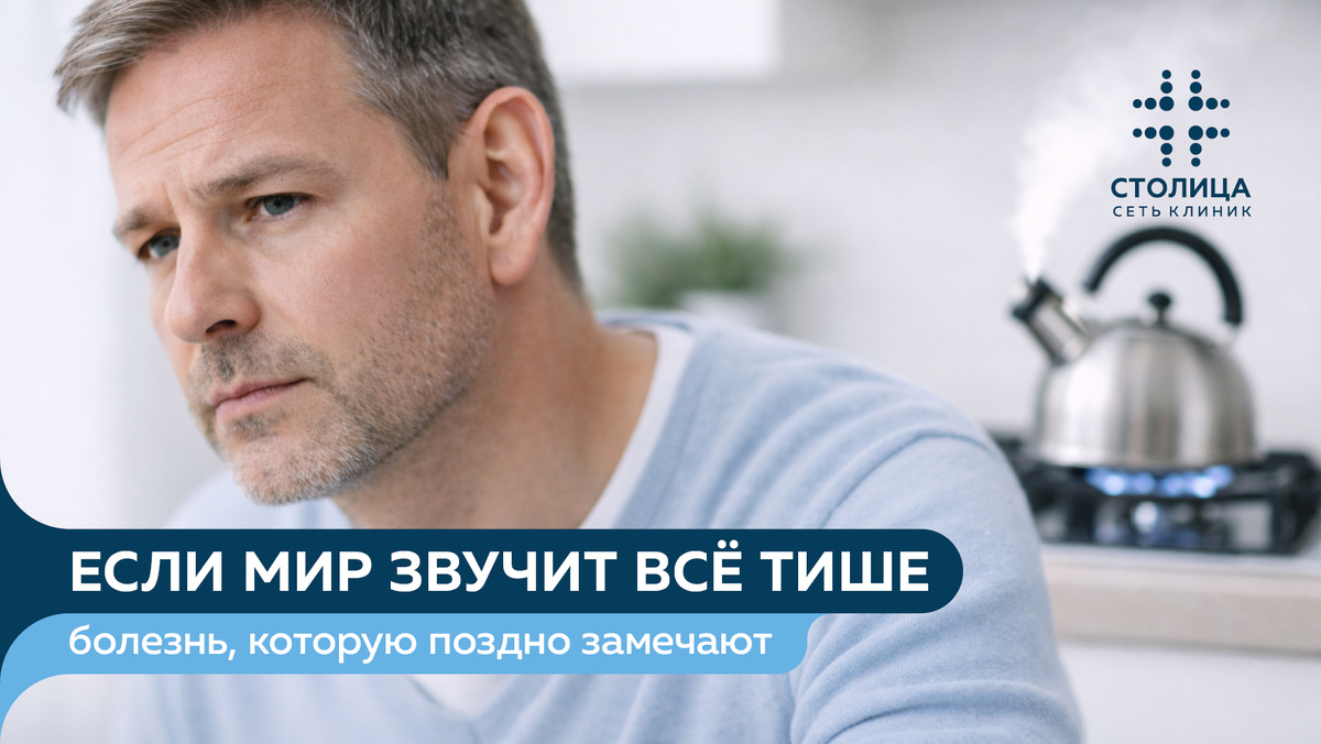 Всем привет! С вами Сеть клиник «Столица». Сегодня поговорим о состоянии, которое подкрадывается незаметно. Вы стали чаще переспрашивать? Делаете громче телевизор, хотя близкие жалуются? В шумном кафе уже не разобрать речь собеседника? Возможно, вы столкнулись с одним из видов снижения слуха — нейросенсорной тугоухостью.